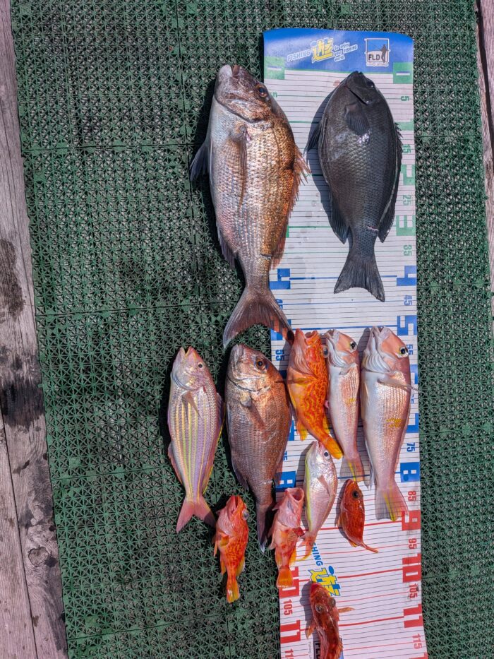 風は少し強かったが、本命、裏本命と産卵前のグレまで、裏切らないアヤメカサゴにイトヨリダイとお疲れ様でした。