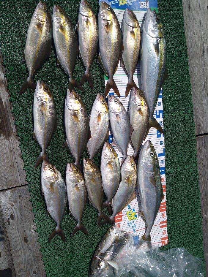 シオ15本、ワラサ2本、オオモンハタ、カサゴにフライ用にアジ10匹ほど確保となりました。
