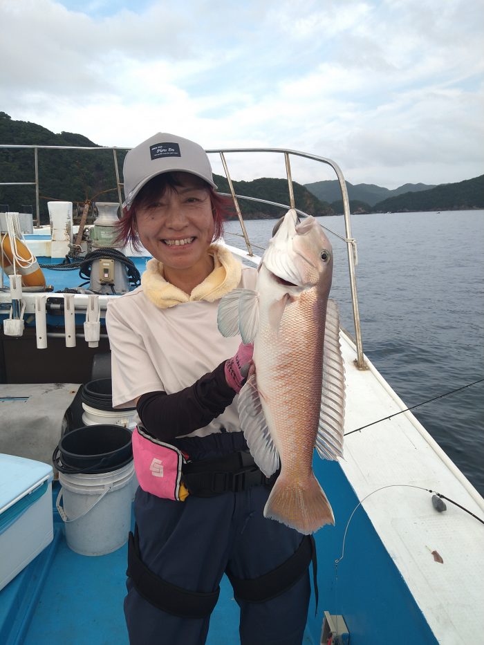 ウネリ収まりつつ有りますがアカアマダイ狙いディープ断念、釣り女子シロアマダイと初対面❗👍