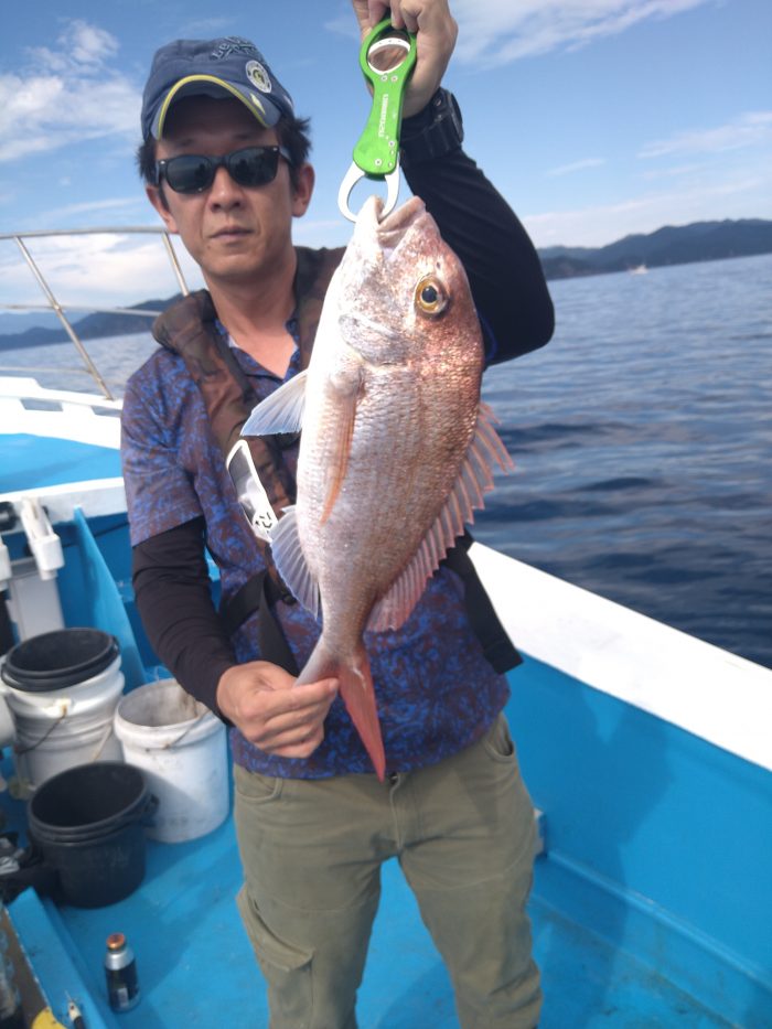 風吹き始め、1.5ノットで流れちゃうNGそれでも、真鯛ゲットグットサイズ❗