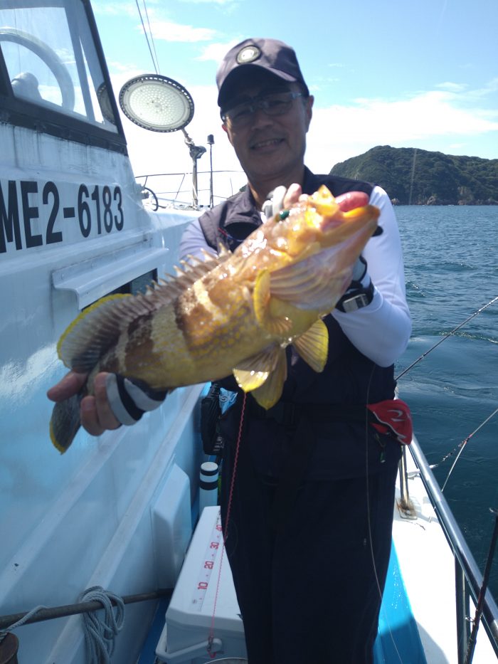 後半風が強くなりシャロー浅場でグット真鯛67センチ、ワラサ(メジロ)69センチ、アオハタ40センチオーバー