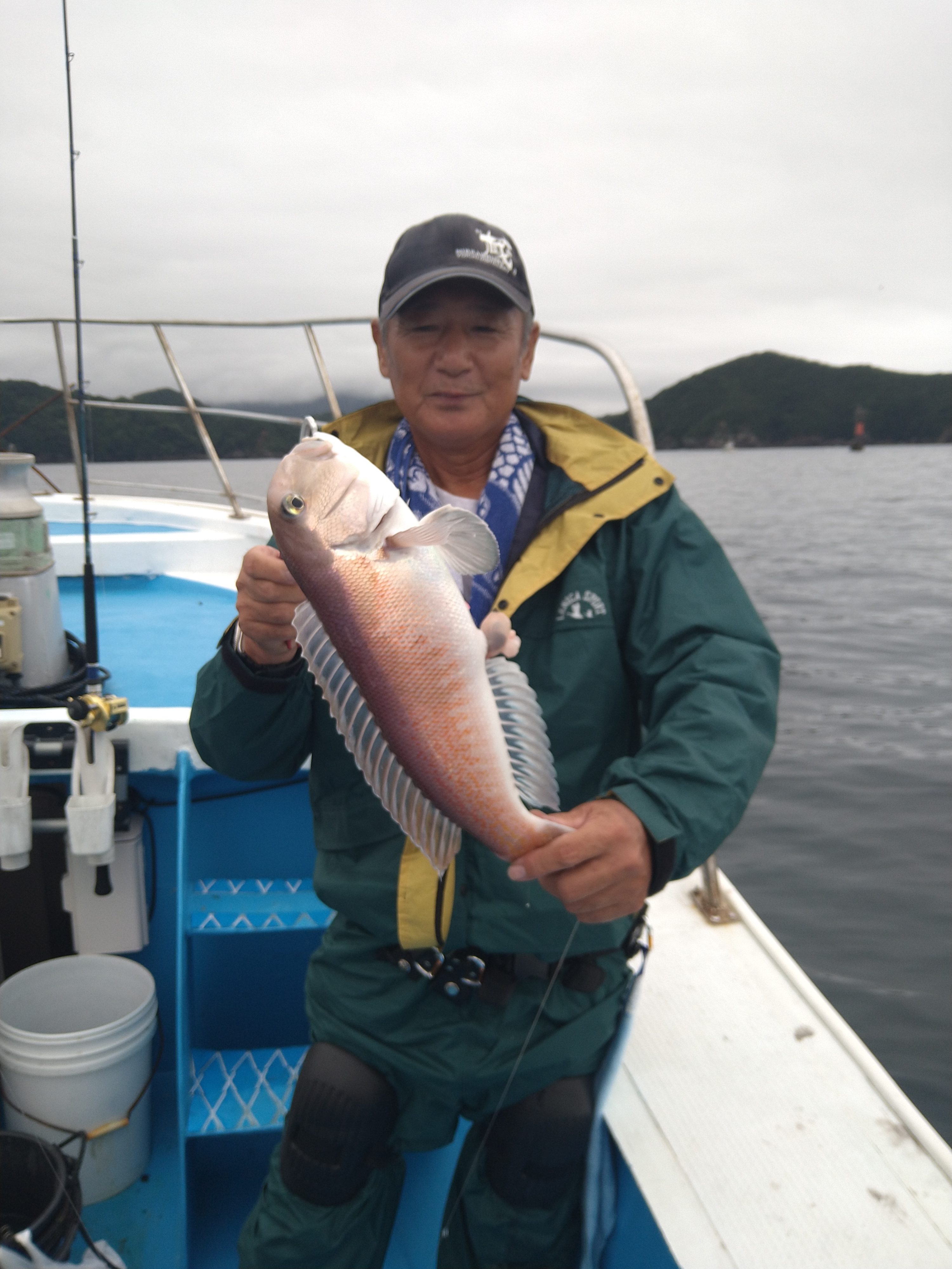 マダイの手持ち写真は、大人の事情で、雨と風おまけに波で撮影できず